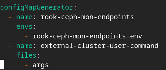 rook-ceph secretspace disabled, configMapGenerator objects missing, mon-tools complaining #126