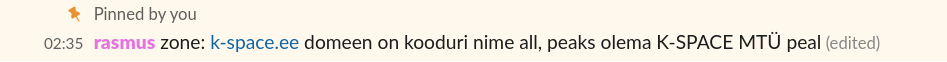 same for whois: zone: k-space.ee domeen on kooduri nime all, peaks olema K-SPACE MTÜ peal